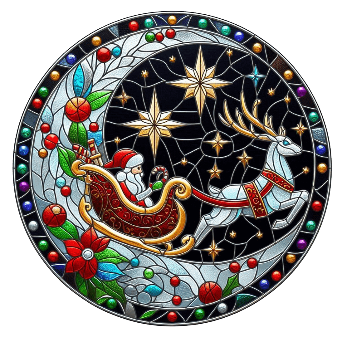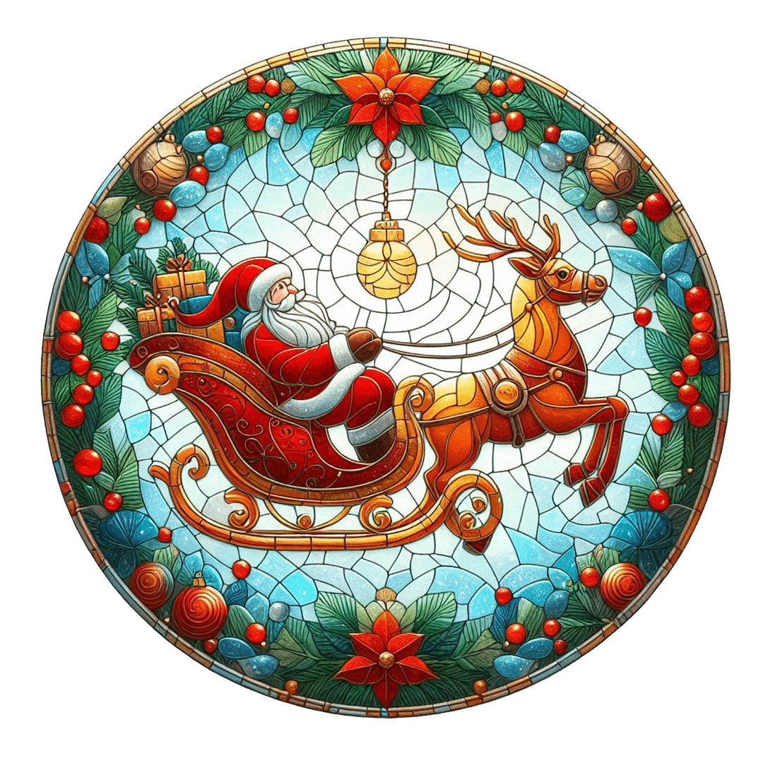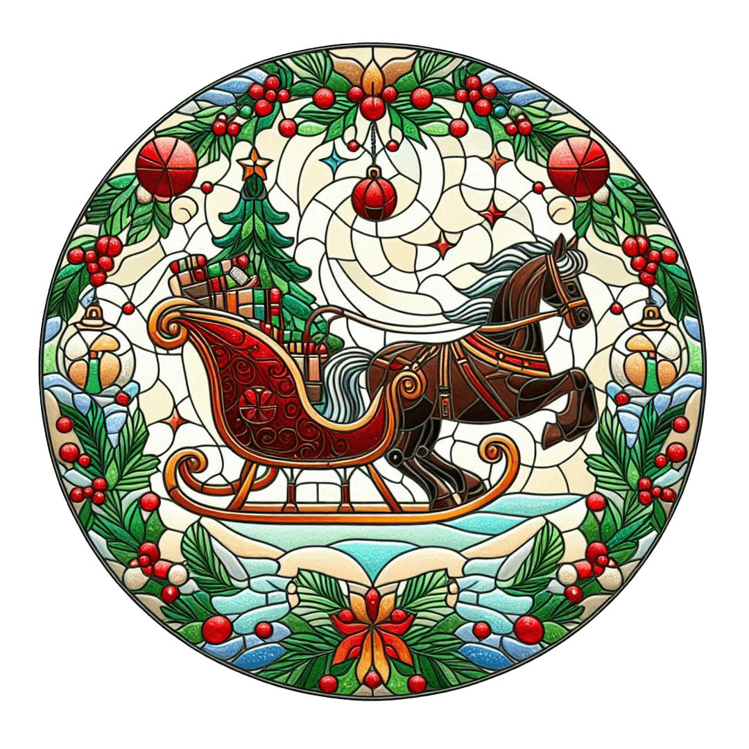 Add a festive touch to your home with my handcrafted Christmas Sleigh suncatchers, beautifully made on durable perspex. Each faux stained glass suncatcher features intricate designs and vibrant colours that capture the holiday spirit, creating a stunning display when hung in your windows, on the Christmas tree as ornaments, or even against walls.